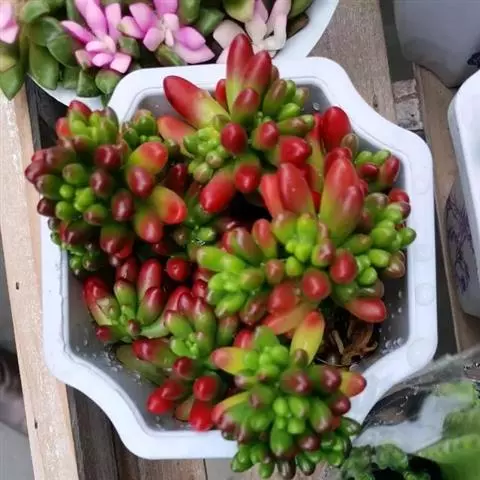 虹之玉是景天科景天属的多肉植物,多年生肉质草本植物。生长速度较快,叶片肉质,呈长椭圆形,约1厘米长,…
