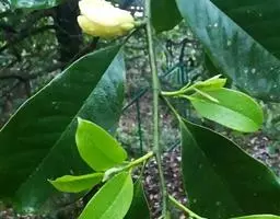 落叶灌木或小乔木,高达3-5米,常丛生,树皮灰褐色,木质有香气,小枝绿紫色或淡褐紫色,有明显皮孔。叶椭圆状倒卵形或倒卵形,长为8-18厘米,宽为3-10厘米,先端急尖或者渐尖,基部渐狭沿叶柄下延至托叶痕,正面为深绿色,幼嫩时疏生短柔毛,背面为灰绿色,沿脉有短柔毛;侧脉每边8-10条,叶柄长为8-20毫米,托叶痕约为叶柄长之半。