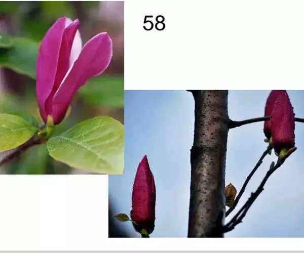 8、兰迪(Randy)、小指(Pinkie)、瑞奇(Ricky)、苏珊(Susan):是由玉兰 (M.denudata)×紫玉兰(M.liliiflora)=二乔木兰 (M.×soulangeana)