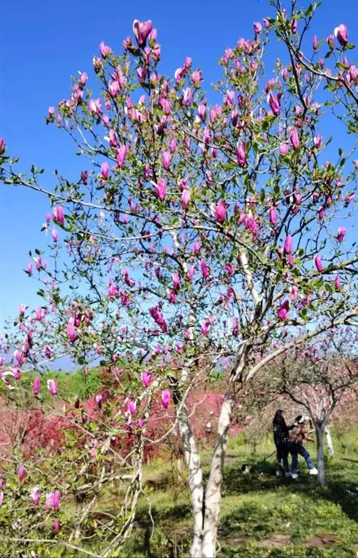 1、二乔木兰(Magnolia×soulangeana):是由紫玉兰和玉兰自然杂交得到,花色比紫玉兰要淡,介于两亲本之间,外面粉红色或淡紫色,里面白色,是着名的庭园观赏品种。在这3种玉兰的组织培养实验中,紫玉兰的再生能力最差,由此也可以看出紫玉兰是非常珍贵的花木。栽培种。