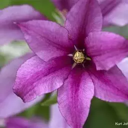 铁线莲是毛茛科多年生藤本花卉。品种繁多,花色丰富,常见颜色有玫瑰红、粉红、紫色和白色等,有重瓣和单瓣之分,花期5~6月。多做高档盆花栽培,国内已有不少园艺爱好者开始种植这种美丽的植物。