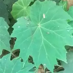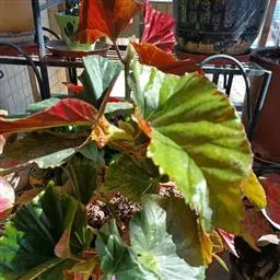 由漆斑菌引起的秋海棠叶斑病症状:病症一般出现在秋海棠叶片边缘、叶尖和破损叶片的叶脉上。坏死区域呈现黑褐色,然后是水渍状。诊断方法是下部的叶片经常会不规则形状的孢子群,中央呈黑色,但边缘为白色。