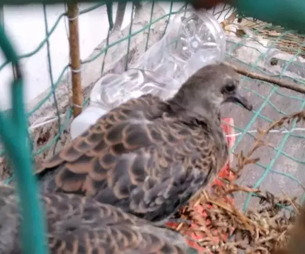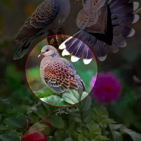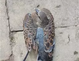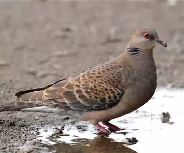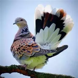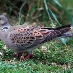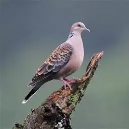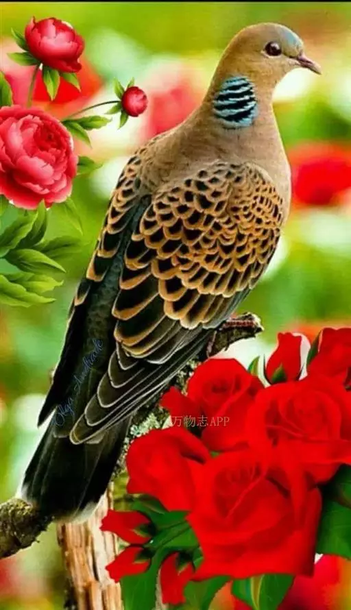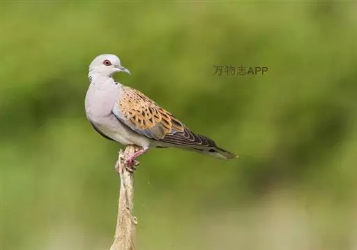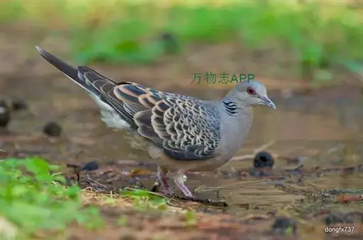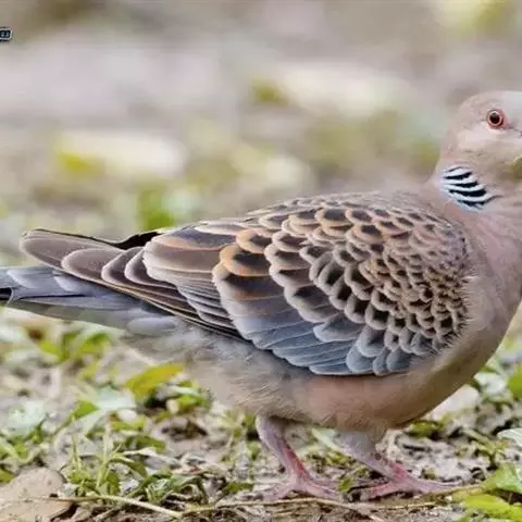 欧斑鸠体长27厘米,是一种体型略小的粉褐色斑鸠。颈侧具多黑白色细纹的斑块,翼覆羽深褐,…