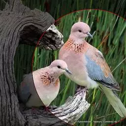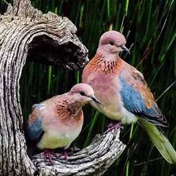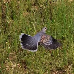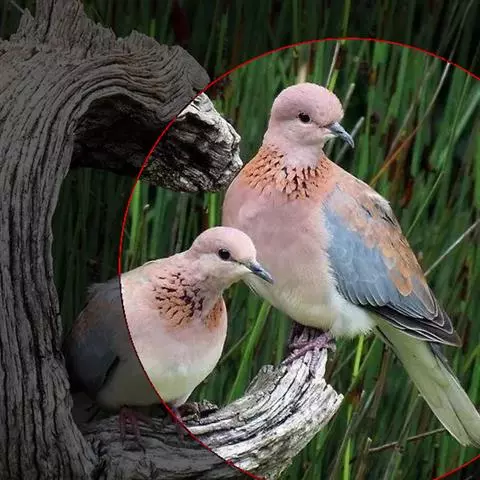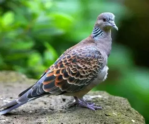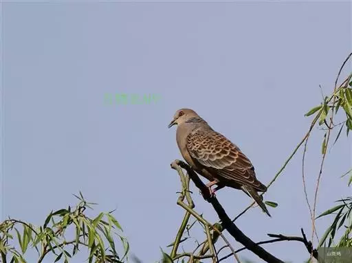 山斑鸠,是鸽形目鸽鸠科斑鸠属鸟类,又名金背斑鸠、棕背斑鸠、山鸠、金背鸠、麒麟斑、麒麟鸠、东方斑鸠、绿斑鸠、山鸽子。山斑鸠颈侧具明显黑白色条纹的块状斑,上体深褐色、具扇贝状斑纹,羽缘棕色,尾羽近黑色,下体多偏粉色。虹膜黄色,喙灰色,脚粉色。山斑鸠是留鸟,在中国常见且分布广泛。此外,还分布于不丹、尼泊尔、巴基斯坦、印度、日本等国。栖息于针阔混交林、季风常绿阔叶林、果园及农耕区,多成对活动于开阔农耕区、村舍、寺院周围及防火林带。取食于地面,主要觅食植物种子、果实、嫩芽等,也吃昆虫。山斑鸠飞翔时鼓翼快速,叫声为反复而低沉的“咕咕咕”声。繁殖期在4-7月,营巢于林中树上,通常一年繁殖2窝,窝卵数2枚,由雌雄亲鸟轮流孵卵,孵化期18~19天。山斑鸠的肉、卵可食,肉入药可益气明目、强筋壮骨,治久病气虚、衰弱无力、两目昏暗等病症。山斑鸠啄食杂草种子,对农田清除杂草有益;但有时也刨食农作物及树的种子。山斑鸠