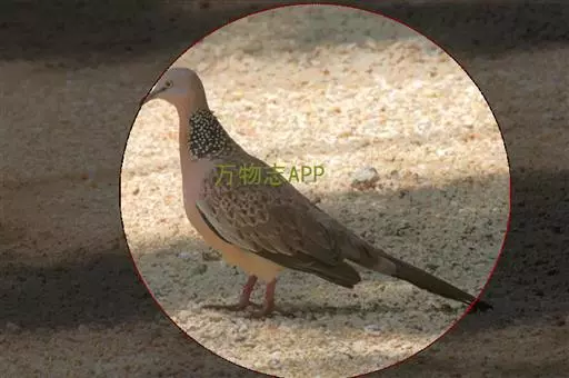 棕斑鸠,是鸽形目鸠鸽科斑鸠属鸟类。整个头和颈淡粉红色,头顶和前额较暗,颊、喉较淡,…