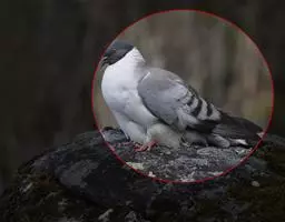 栖息中的山斑鸠 繁殖时间在4-7月。一般年产2窝,通常在迁来时多已成对。营巢于森林中树上,也在宅旁竹林、孤树或灌木丛中营巢。通常置巢于靠主干的枝桠上,距地高多在1.5-8米。巢甚简陋,主要由枯的细树枝交错堆集而成,呈盘状,结构甚为松散,从下面可看到巢中的卵或雏鸟。巢的大小为外径14-18厘米×16-20厘米,内径8-10厘米×8-11厘米,高4-8厘米,深3-5厘米。巢内无内垫,或仅垫有少许树叶、苔藓和羽毛。每窝产卵2枚,卵白色,椭圆形,光滑无斑,大小为28-37毫米×21-27毫米,重7-12克。雌雄亲鸟轮流孵卵,孵卵期间甚为恋巢,有时人在巢下走动或停留亦不离巢飞走,孵卵期18-19天。雏鸟晚成性,刚出壳时雏鸟裸露无羽,身上仅有稀疏几根黄色毛状绒羽。由雌雄亲鸟共同抚育,雏鸟将嘴伸入亲鸟口中取食亲鸟从嗦囊中吐出的半消化乳状食物‘鸽乳’。经过18-20天的喂养,幼鸟即可离巢飞翔。