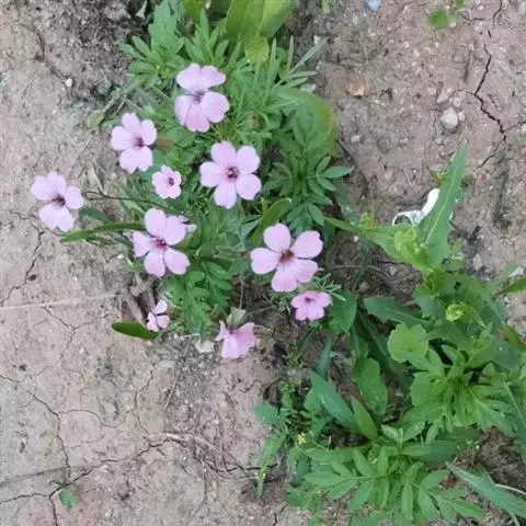 三歧聚伞花序密被腺毛;花直径3-5毫米;花梗短或近无;花萼筒状钟形,长4-6毫米,密被腺毛,纵脉凸起,绿色,直达齿端,萼齿三角状卵形,顶端钝或急尖,边缘膜质;花瓣紫红色,狭匙形,长7-8毫米,全缘;雄蕊明显外露,长7-9毫米,花丝无毛,花药黄色;子房狭倒卵形,长约7毫米;花柱长约3毫米。蒴果棒状,长约7毫米;种子狭倒卵形,长约3毫米,褐色。花期6-9月,果期7-10月。
