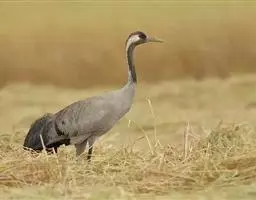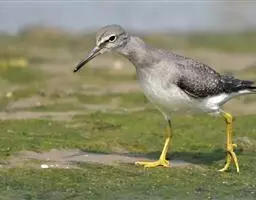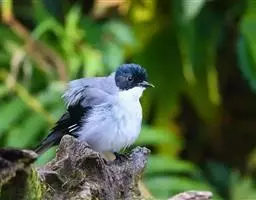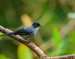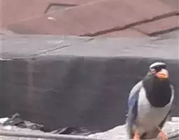 雌鸟头部为灰蓝色,翅膀外侧的红棕色羽毛区域比较小,上喙浅黄色,下喙灰白色。