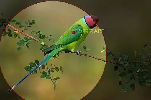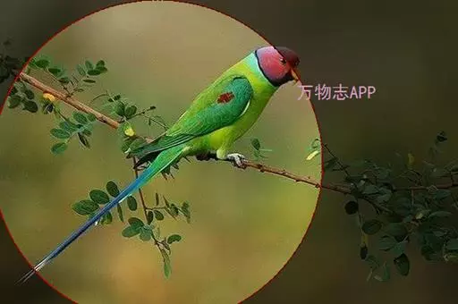 花头鹦鹉体长约30厘米。这种鹦鹉鸟体为绿色,头部粉红色,到了头部后方、颈部均变为蓝紫色;下巴下方延伸到脸颊下方,环绕整个颈部有著一条黑色的环状羽毛,并连接一条蓝绿色的条状羽毛;背部下方和翅膀内侧覆羽与为绿色,翅膀外侧的覆羽上有一块红棕色的羽毛;中间尾羽为蓝色,尖端浅黄,外侧覆羽黄绿色,尖端浅\黄色;上鸟喙橙黄色,下鸟喙棕黑色,虹膜黄白色。 [1-2]