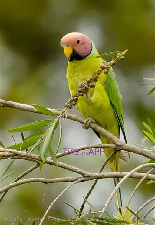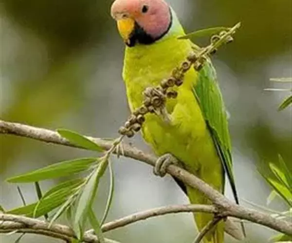 花头鹦鹉(学名:Psittacula roseata)是中型鸟类,仅有2个亚种。体长26-36厘米,体重85-90克。是典型的攀禽,鸟喙强劲有力,喙钩曲,上颌具有可活动关节,喙基部具有腊膜。肌肉质舌厚。脚短,强大,对趾型,两趾向前两趾向后,适合抓握和攀援生活。头部粉红色,到了头部后方、颈部均变为蓝紫色。体羽主要为黄绿色,上体颜色较深,翅绿色。雌雄鸟头部颜色有别:雄鸟为玫瑰红,雌鸟呈灰蓝色。晚成雏。主要栖息于约1500米的森林地带、次要林区和部份被开垦过的地区、干燥以及潮湿的热带草原等地。以坚果、浆果、嫩枝芽、谷物、种子等为食。分布于孟加拉国、柬埔寨、中国,印度、缅甸、泰国和越南等国。