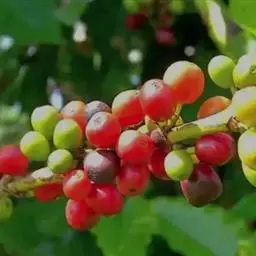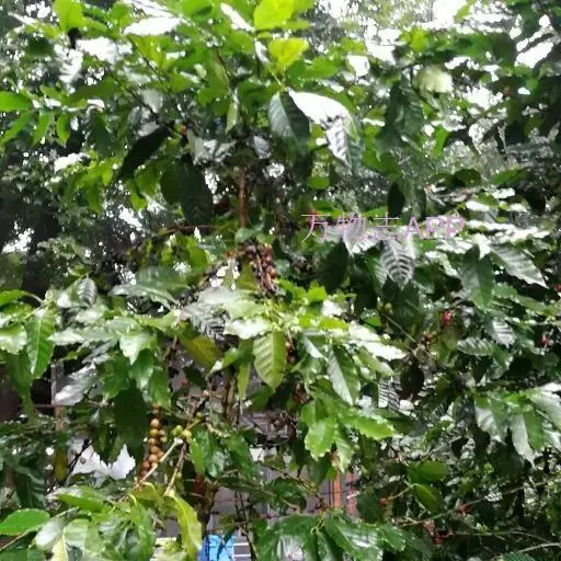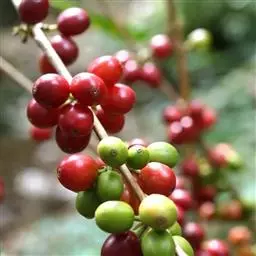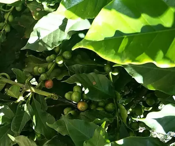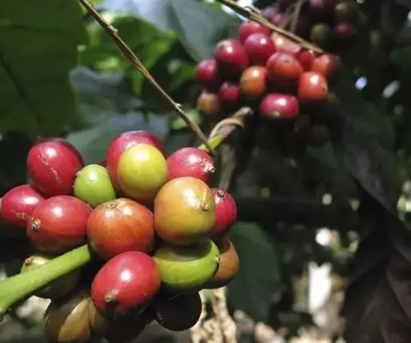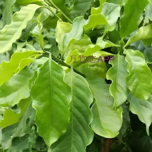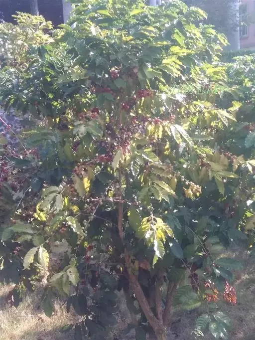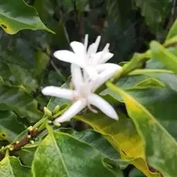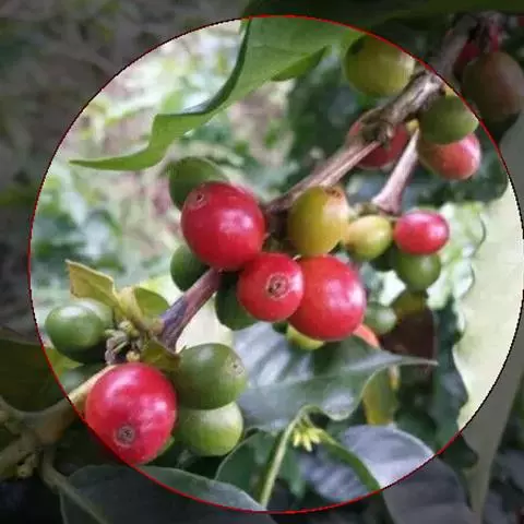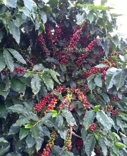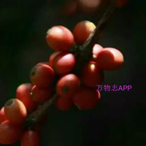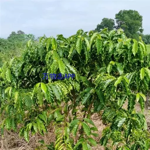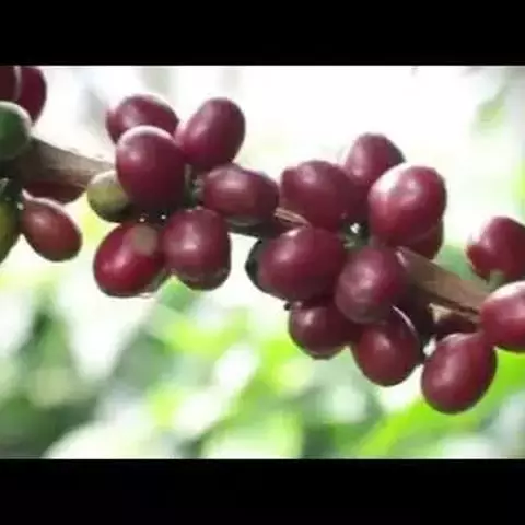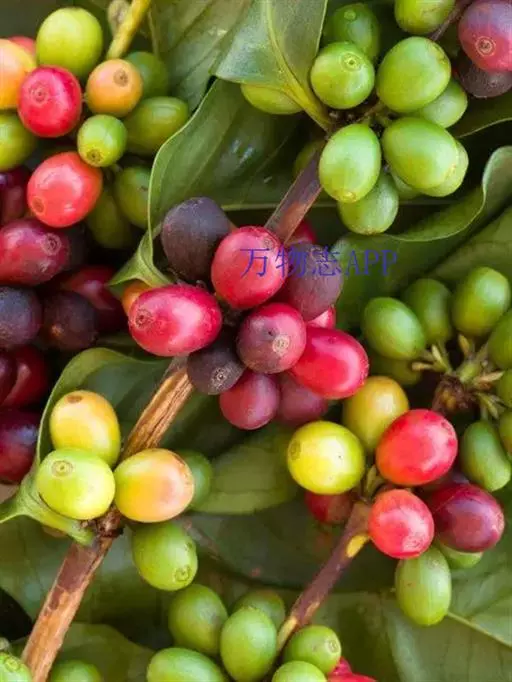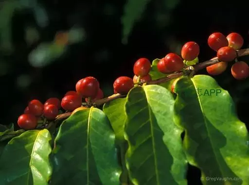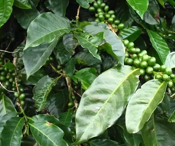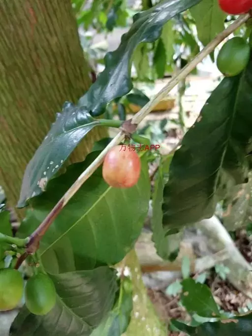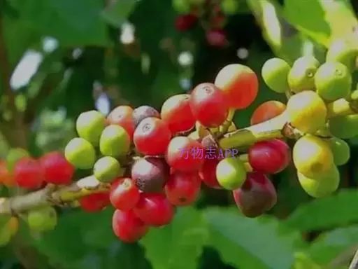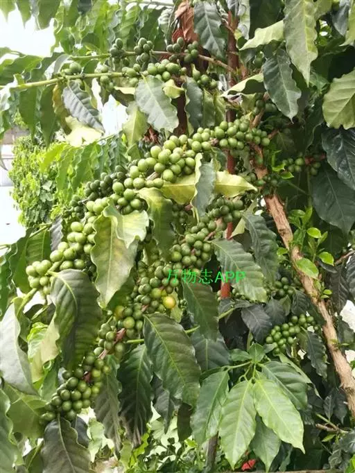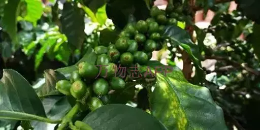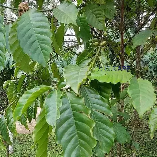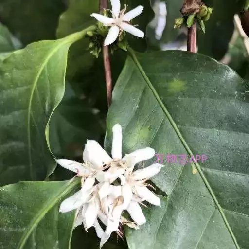 小粒咖啡(Coffea arabica L.)小乔木或大灌木,高5-8米;老枝灰白色,幼枝无毛。叶薄革质,卵状披针形或披针形,两面无毛;叶柄长8-15毫米;托叶阔三角形。聚伞花序数个簇生于叶腋内,每个花序有花2-5朵,无总花梗或具极短总花梗;花芳;萼管管形;花冠白色,裂片常长于花冠管;花药伸出冠管外;花柱长12-14毫米,柱头长3-4毫米。浆果成熟时红色,外果皮硬膜质,中果皮肉质,有甜味;种子背面凸起,腹面平坦,有纵槽。花期3-4月。
