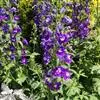 轮伞花序4-6花,疏离,组成长7-13厘米顶生总状花序或总状圆锥花序;苞片椭圆状披针形,小,一般比花梗短,全缘,被短柔毛;花梗长约3毫米,与花序轴被长柔毛及具腺微柔毛。花萼钟形,长7-9毫米,背面常染紫色,外面沿脉被长柔毛,余部被腺体,萼口边缘被缘毛,内面满布微硬伏毛,二唇形,上唇宽三角形,长2.5毫米,宽6.5毫米,先端具小尖突,具3脉,2侧脉具狭翅,下唇比上唇长,长3毫米,宽5毫米,浅裂成2齿,齿三角形,渐尖。花冠蓝紫色,长2.5-3厘米,外被短柔毛,内面在冠筒中下部散布微柔毛,冠筒长13-15毫米,喇叭形,基部宽约2.5毫米,至喉部宽达6毫米,冠檐二唇形,上唇镰刀形,先端微缺,向上高举,长9-11毫米,宽约4.5毫米,下唇3裂,中裂片最大,倒心形,长4.5毫米,宽7毫米,先端微缺,基部收缩,边缘波状;侧裂片卵圆形,宽2.5毫米。能育雄蕊2,包在花冠上唇内,花丝扁平,长3毫米,药隔长6-10毫米,上臂长约为下臂的2倍,二下臂药室退化,顶端联合。花柱伸出,先端不相等2裂,后裂片较短。花盘前方略膨大。