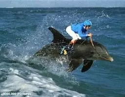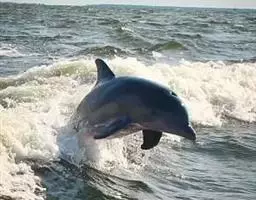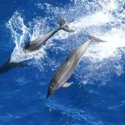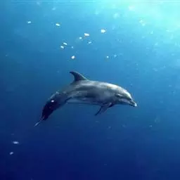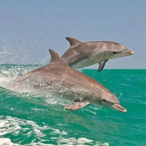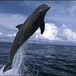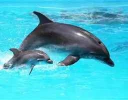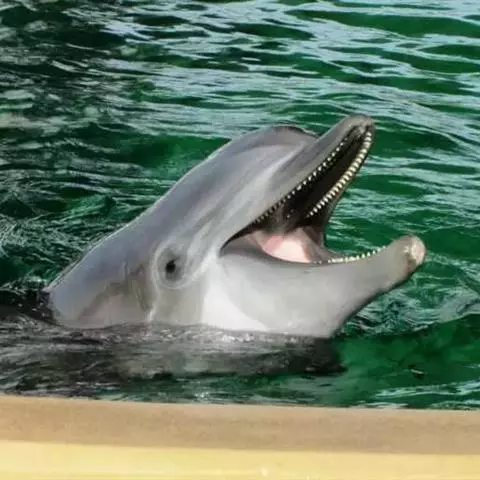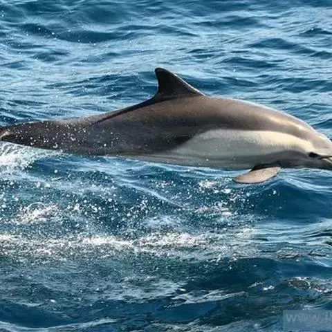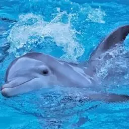 宽吻海豚,Tursiops truncatus (Montagu, 1821),海豚科宽吻海豚属的一种动物。又叫尖嘴海豚,胆鼻海豚。主要分布在温带和热带的各大海洋中,包括中国的黄海、渤海等海域。宽吻海豚常在靠近陆地的浅海地带活动,较少游向深海,和所有海豚一样,宽吻海豚长着和鱼一样的流线型身体。皮肤光滑无毛,体背面是发蓝的钢铁色和瓦灰色,腹部有很明显的凸起。吻较长,嘴短小,嘴裂外形似乎总是在微笑,为中国二级保护动物。雌性宽吻海豚的寿命在80年左右,而雄性宽吻海豚由于生活压力更大,不容易过50年。