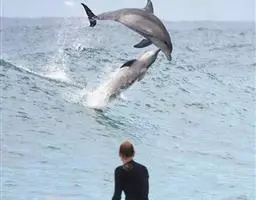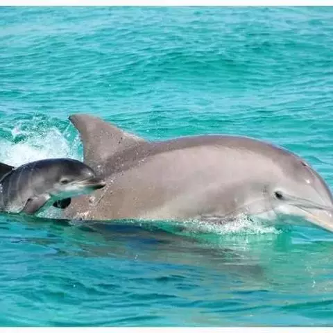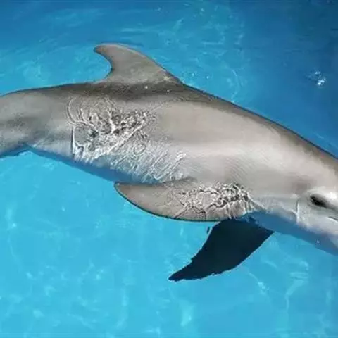 天敌:大型的鲨鱼,如虎鲨、黑鲨、公牛鲨等会捕食宽吻海豚。章鱼偶尔也会攻击宽吻海豚。