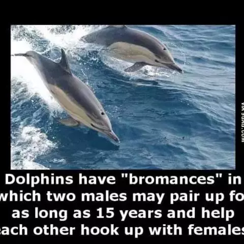 宽吻海豚同性性行为发生的频率与异性性行为发生的频率几乎相当。雄海豚通常是双性恋,但它们必须经过一段同性恋的特殊时期,该时期内的同性性行为包括口部性行为,一只雄海豚会用吻部刺激其它雄性。有时,雄海豚也会用勃起的生殖器刺激其它雄性。