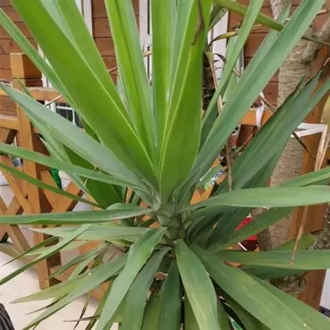 乔木状,高3~4m,茎不分枝或分枝,树皮带灰褐色,幼枝有密环状叶痕。叶聚生于茎、枝顶端,几乎互相套迭,剑形,薄革质,长达70厘米,宽1.5-3厘米,向基部略变窄而后扩大,抱茎,无柄。圆锥花序长在30厘米以上;花序轴无毛或近