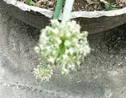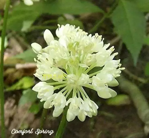 花葶圆柱状,高25-80厘米,1/4-1/2被叶鞘;总苞2裂,宿存;伞形花序球状,具多而密集的花;小花梗近等长,比花被片长2-4倍,果期伸长,基部无小苞片;花白色或带绿色,极稀带红色;内轮花被片椭圆状卵形,长(4.5-)5-6毫米,宽2-3毫米,先端钝圆,常具小齿;外轮的狭而短,舟状,长4-5毫米,宽1.5-2毫米,先端钝圆;花丝比花被片长1/4至1倍,基部合生并与花被片贴生,内轮的狭长三角形,基部宽1-1.5毫米,外轮的锥形,基部比内轮的窄;子房具3圆棱,基部收狭成短柄,柄长约1毫米,每室具1胚珠。花果期6-8月。
