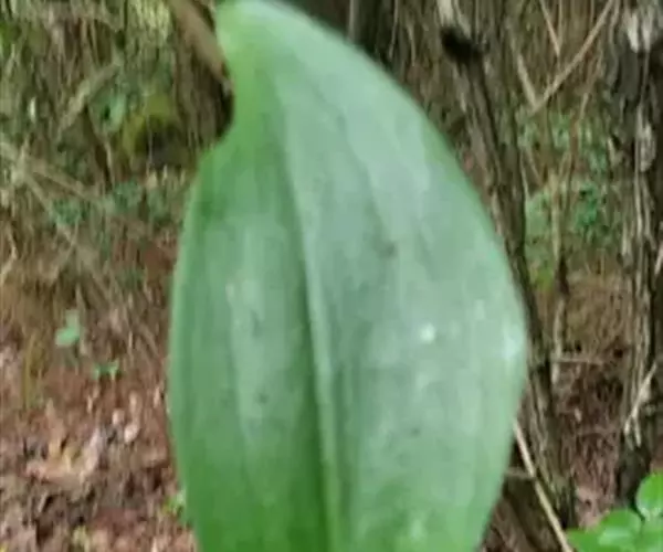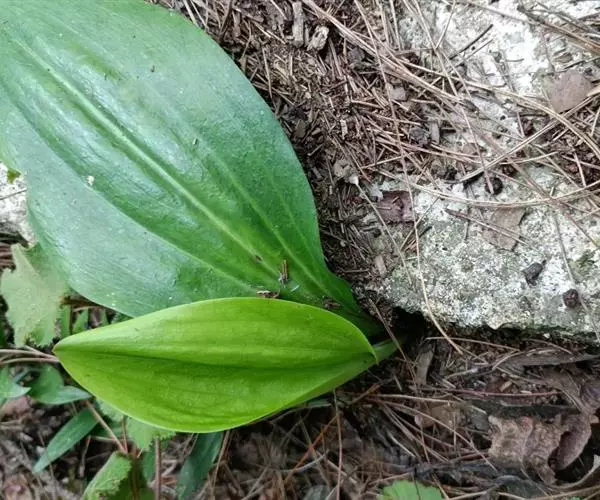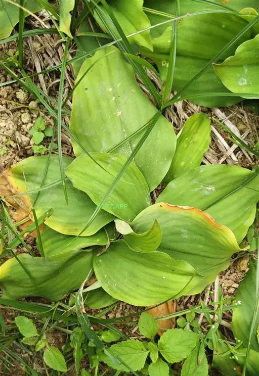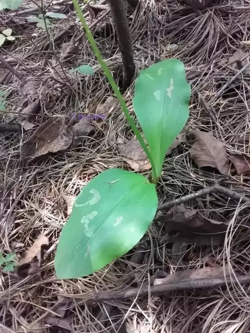 鳞茎单生或2-3枚聚生,近圆柱状;鳞茎外皮灰褐色至黑褐色,破裂成纤维状,呈明显的网状。叶2-3枚,倒披针状椭圆形至椭圆形,长8-20厘米,宽3-9.5厘米,基部楔形,沿叶柄稍下延,先端渐尖或短尖,叶柄长为叶片的1/5-1/2。