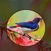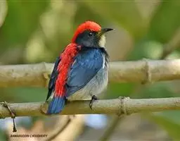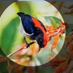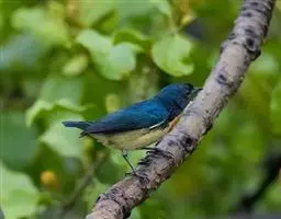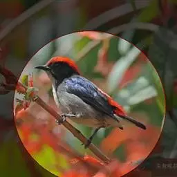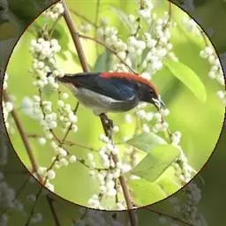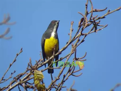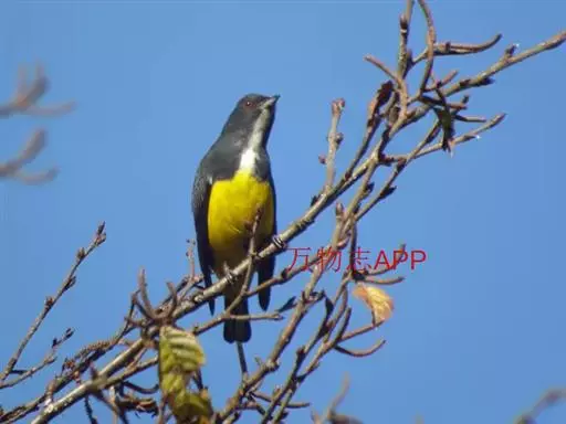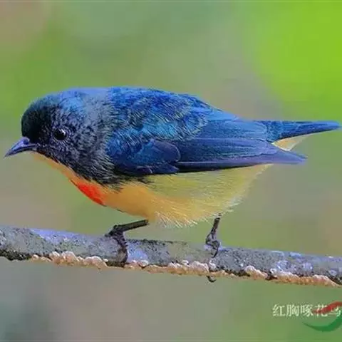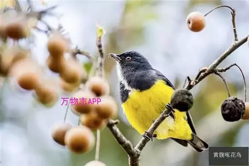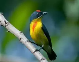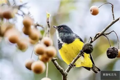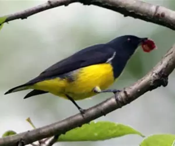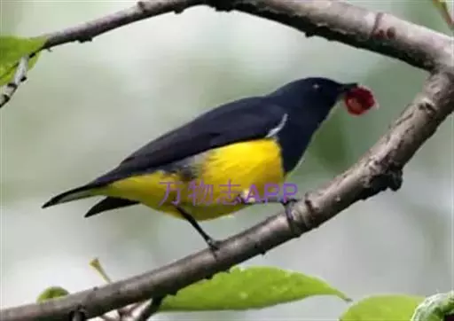 黄腹啄花鸟(学名:Dicaeum melanoxanthum):体重11-16克,体长104-117毫米。是一种体型大,下腹部为艳黄色的啄花鸟,雄鸟特征为头黑色,喉部有白色纵斑、喉侧及上体成对比,两翅和尾黑色,外侧尾羽内翈具白色斑块。其余下体淡黄色。雌鸟似雄鸟但色暗。虹膜褐色,嘴黑色,脚黑色。