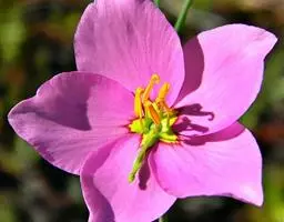 伞状聚伞花序,腋生,总梗长约2毫米至几无,密被小腺点;花梗长约3毫米,密被小腺点;花萼钟状漏斗形,长约4毫米,密被小腺点,钝四棱形,裂片4(-5),广卵形,长约1毫米,具小尖头;花瓣4(-5),白色至粉红色,卵形,顶端渐尖或近急尖,长约4毫米,于右上角突出一小片;雄蕊4(-5),等长,花丝长约4毫米,花药长约4毫米,粉红色,呈曲膝状,药隔微膨大,下延直达花药基部,有时几呈小瘤状;子房坛形,下位,4室,顶端具4个小突起,被疏小腺点。蒴果椭圆形,4裂,为宿存萼所包;宿存萼与果等长,檐部平截,被示腺点。花期6-8月,果期10-12月,有时茎上部开花,下部果熟。