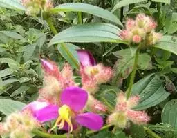 柏拉木,别名:黄金梢、山甜娘、崩疮药,拉丁文名:Blastus cochinchinensis Lour. ,为野牡丹科、柏拉木属灌木,高0.6-3米;茎圆柱形,分枝多,幼时密被黄褐色小腺点,以后脱落。叶片纸质或近坚纸质,披针形、狭椭圆形至椭圆状披针形,顶端渐尖,基部楔形,全缘或具极不明显的小浅波状齿,白色至粉红色,卵形,顶端渐尖或近急尖,为宿存萼所包;宿存萼与果等长,檐部平截,被示腺点。花期6-8月,果期10-12月,有时茎上部开花,下部果熟。