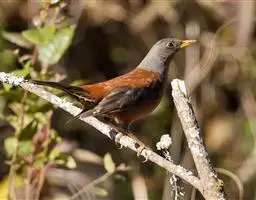 灰头鸫:中型鸟类,体长23-27厘米。整个头、颈和上胸褐灰色,两翅和尾黑色,上、下体羽栗棕色。…