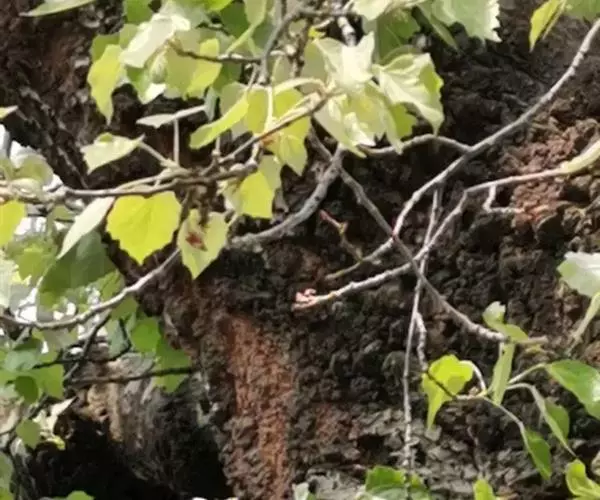新一代中华红霞杨 大叶杨组,树皮呈片状开裂,粗糙。芽圆锥形,微有粘质,光滑。短枝与长枝叶近圆形,基部心形或深心形;叶柄仅先端微扁。花盘深裂,宿存;雄蕊12-40,花药长椭圆形,具细尖;子房具柔毛,花柱较长,柱头2-3裂。蒴果具毛,2-3(4)瓣裂。