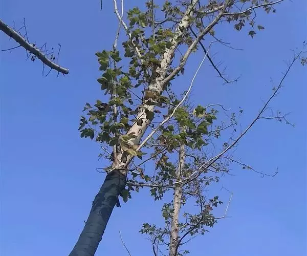 107杨树 杨树苗干的腋芽容易萌发侧枝,应及时抹芽,抹晚了会影响主干生长,抹芽应注意不伤苗干,保护叶片。