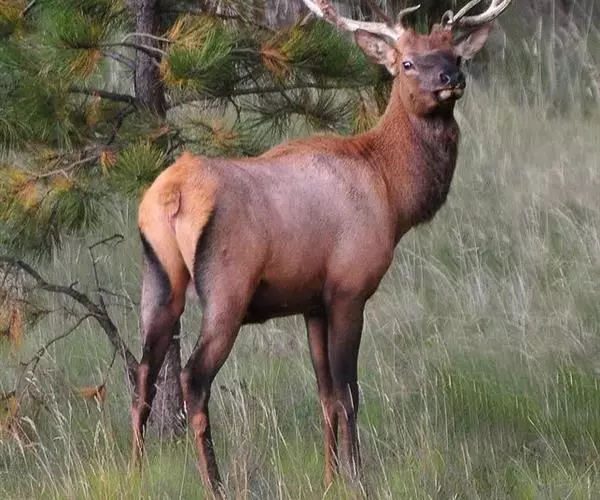 雄性小鹿在两岁时长角分叉,6岁叉角才发育完全。头大,吻部狭长,鼻端裸露部分宽大,眼小,眶下腺显著。四肢粗壮,主蹄宽大、多肉,有很发达的悬蹄,行走时带有响亮的磕碰声。尾特别长,有绒毛,呈灰黑色,腹面为黄白色,末端为黑褐色。夏季体毛为赤锈色,颈背上有一条黑色的纵纹,腹部和臀部为棕白色。9月以后体毛被较长而厚的灰色冬毛所取代。