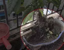 方法一 准备好兰盆及植料后,将兰株倒拿(根在上,叶在下)放于水龙头下以慢水冲洗,但水压切忌过强,以免伤兰根及叶子。用拇指和食指抓住兰头,小指抵住盆缘,用竹筷将根固定,当放入盆内时,尽量不要让根接触到盆壁。将豆粒大的混合石砾倒入盆底至三分之一处。然后倒入中粒植料至五分之四处,填实和尽量不要留下空间。将竹筷拔出,并摇实盆中植料。填实植料后,再用大粒植料埴入至距盆缘1.5厘米处。最后再倒入豆粒大植料,以将假鳞茎全部埋入土中为度,然后充分摇实。用压土工具轻压植料,并将表面弄平。种植完毕后,植料在盆中以中央稍高为好。