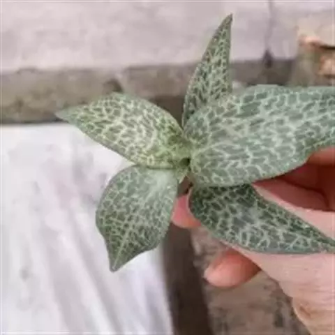 多叶斑叶兰植株高15-25厘米。根状茎伸长,茎状,匍匐,具节。茎直立,长9-17厘米,绿色,具4-6枚叶。叶疏生于茎上或集生于茎的上半部,叶片卵形至长圆形,偏斜,长2.5-7厘米,宽1.6-2.5厘米,绿色,先端急尖,基部楔形或圆形,具柄;叶柄长1-2厘米,基部扩大成抱茎的鞘。