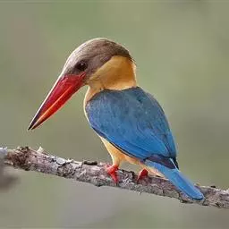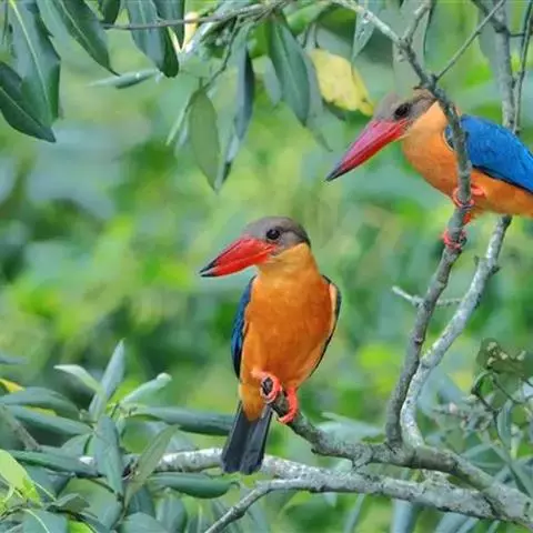 鹳嘴翡翠:体长33-37厘米。体重140-200克。共有13个亚种,体型大,嘴形巨大、侧扁,似鹳嘴…