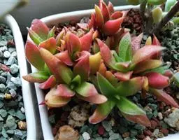 叶红卷叶 拉丁学名:科属景天科(CRASSULACEAE)一直非常流行的品质,状态好的情况下叶片会有糖果般迷人的红色。与立田外形相似,秋天红卷叶.