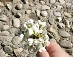总状花序顶生及腋生,果期延长达20厘米;花梗长3~8毫米;萼片长圆形,长1.5~2毫米;花瓣白色,卵形,长2~3毫米,有短爪。短角果倒三角形或倒心状三角形,长5~8毫米,宽4~7毫米,扁平,无毛,顶端微凹,裂瓣具网脉;花柱长约0.5毫米;果梗长5~15毫米。