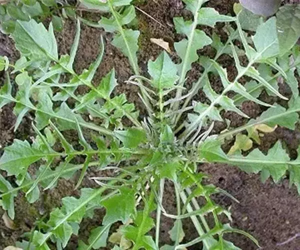 基生叶丛生呈莲座状,大头羽状分裂,长可达12厘米,宽可达2.5厘米,顶裂片卵形至长圆形,长5~30毫米,宽2~20毫米,侧裂片3~8对,长圆形至卵形,长5~15毫米,顶端渐尖,浅裂、或有不规则粗锯齿或近全缘,叶柄长5~40毫米;茎生叶窄披针形或披针形,长5~6.5毫米,宽2~15毫米,基部箭形,抱茎,边缘有缺刻或锯齿。
