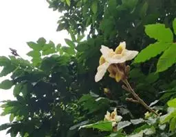 楸紫葳科小乔木,高8-12米。叶三角状卵形或卵状长圆形,宽达8厘米,顶端长渐尖,基部截形,…