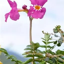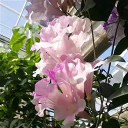炮仗花系多年生常绿攀缘藤本植物,生有卷须,可以借助他物向上攀缘生长。家庭培养时,为了提高观赏效果,栽时可选用大而深的花盆,当幼苗长到一定高度时在盆内搭一花架,将其茎蔓引缚在花架上,并注意分布均匀,放在阳光充足的阳台上养护。也可将其栽在大盆内,在阳台上设花架,让其向上攀缘生长,待枝条在附属物体上长到一定高度时,需打顶,促使萌芽新枝,以利多开花。已经开过花的枝条,来年不在开花,而新生长的枝条要孕蕾,因此对一些老枝、弱枝等要及时剪除,以免消耗养分,影响第二年开花。