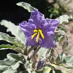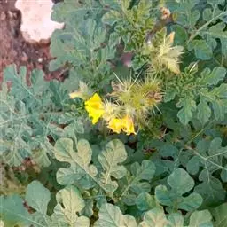 乳茄,茄科茄属直立草本植物,覆盖短的柔毛和扁平尖刺,小枝覆盖长柔毛和扁平刺,刺为蜡黄色,…