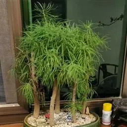泽米苏铁科苏铁属。植物丛生,茎撑球状,叶为中型羽状复叶,簇生于茎顶,小叶为卵状椭圆形。雄雌异株,雄…