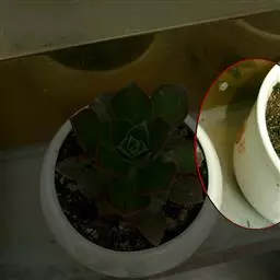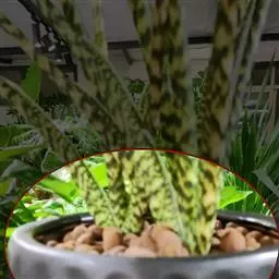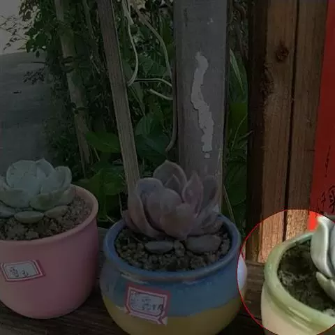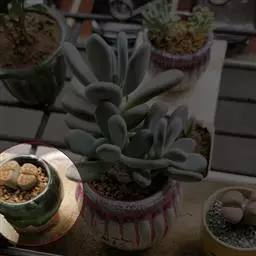 白银寿,植株低矮, 叶呈莲座状紧凑排 列, 叶顶端呈夹杂红色纹路的浓白色, 是此品种的 典型特征, 故名 “ 白银 ”。