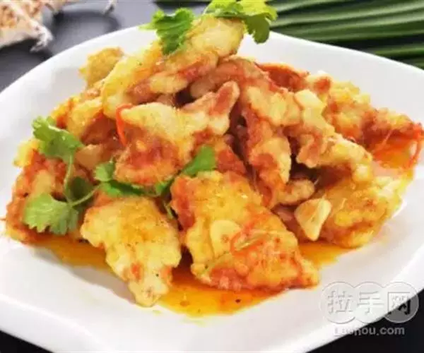 1.猪肉片沾上生粉后,要轻抖去多余的粉,以免炸好后面衣过厚,影响锅包肉的口感。
