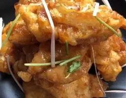 5.锅炮肉制作关键在于炸浆和芡汁,前者以捞起适量炸浆往下倒不会断为准;后者的生粉不宜多放,否则芡汁会将肉片粘在一起很难分开。