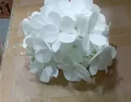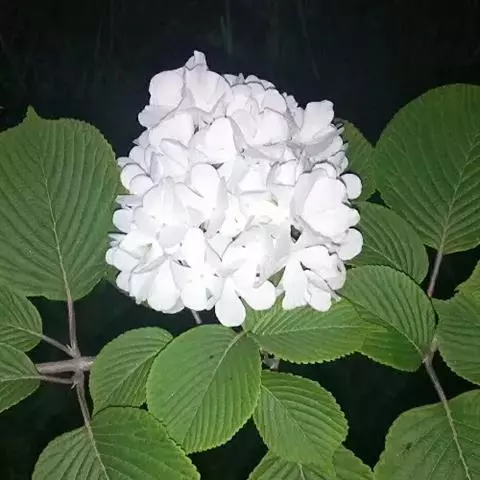 聚伞花序伞形式,球形,直径4-8厘米,常生于具1对叶的短侧枝上,全部由大型的不孕花组成,总花梗长1.5-4厘米,稍有棱角,被黄褐色簇状毛,第一级辐射枝6-8条,花生于第四级辐射枝上;萼筒倒圆锥形,无毛或有时被簇状毛,萼齿卵形,顶钝圆;花冠白色,辐状,直径1.5-3厘米,裂片有时仅4枚,倒卵形或近圆形,顶圆形,大小常不相等;雌、雄蕊均不发育。花期4-5月。