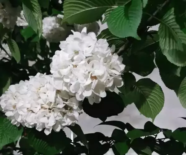 雪球荚蒾树姿舒展,开花时满树白花犹如积雪压枝,高洁素雅,花谢后则绿叶如碧。可孤植或片植于草坪、林缘路旁,房前屋后、窗下墙外等处,都具有较好的景观效果。