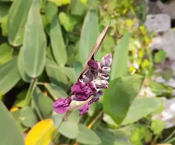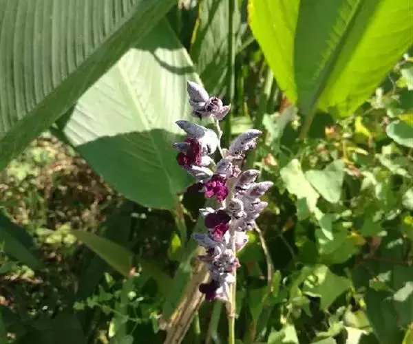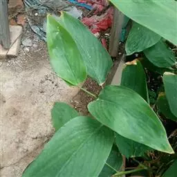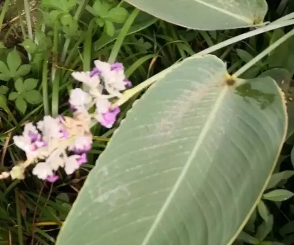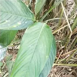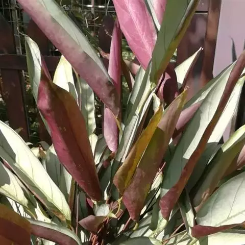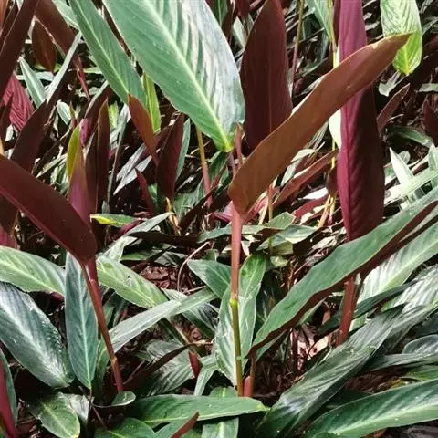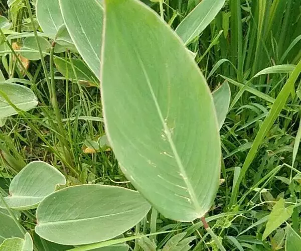 水竹芋为竹芋科多年生草本植物,植株高可达2米。叶互生,叶片卵形,叶色青绿,叶缘紫色,上被白粉,叶片长20厘米至40厘米,宽10厘米至15厘米,具较长叶柄。