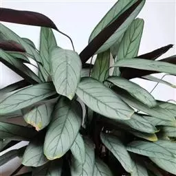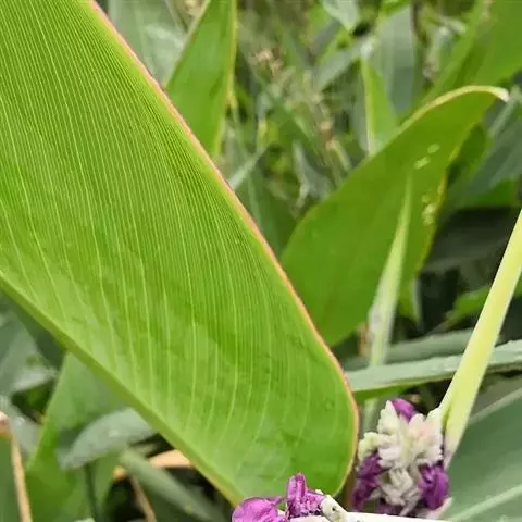 水竹芋为竹芋科多年生草本植物,植株高可达2米。叶互生,叶片卵形,叶色青绿,叶缘紫色,上被白粉,叶片…