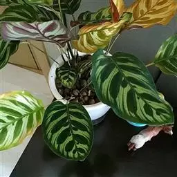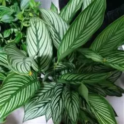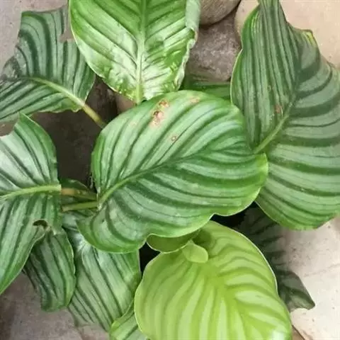 花叶竹芋:竹芋科,竹芋属匍匐状分枝草本植物,植株矮小,高可达40厘米,叶片长圆形、椭圆形至卵形,基…