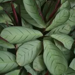猫眼竹芋 :竹芋科,肖竹芋属多年生常绿草本观叶植物。株高可达100厘米,叶片长椭圆形,头状花序,…