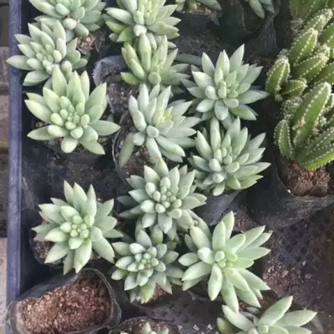 铭月是景天科景天属的多年生亚灌木。多分枝,茎蔓生或直立,高约10-30厘米。…