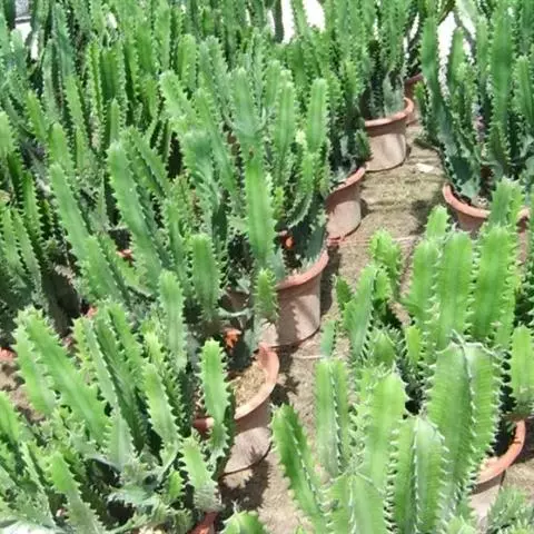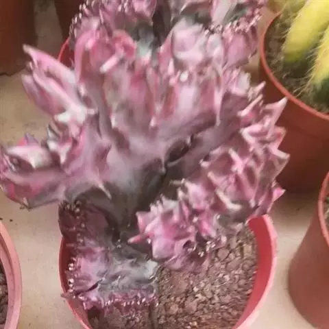 魁伟玉原产南非,是一种大戟科的多年生肉质植物,植株具粗圆筒形肉质茎,有10条以上的突出棱,…